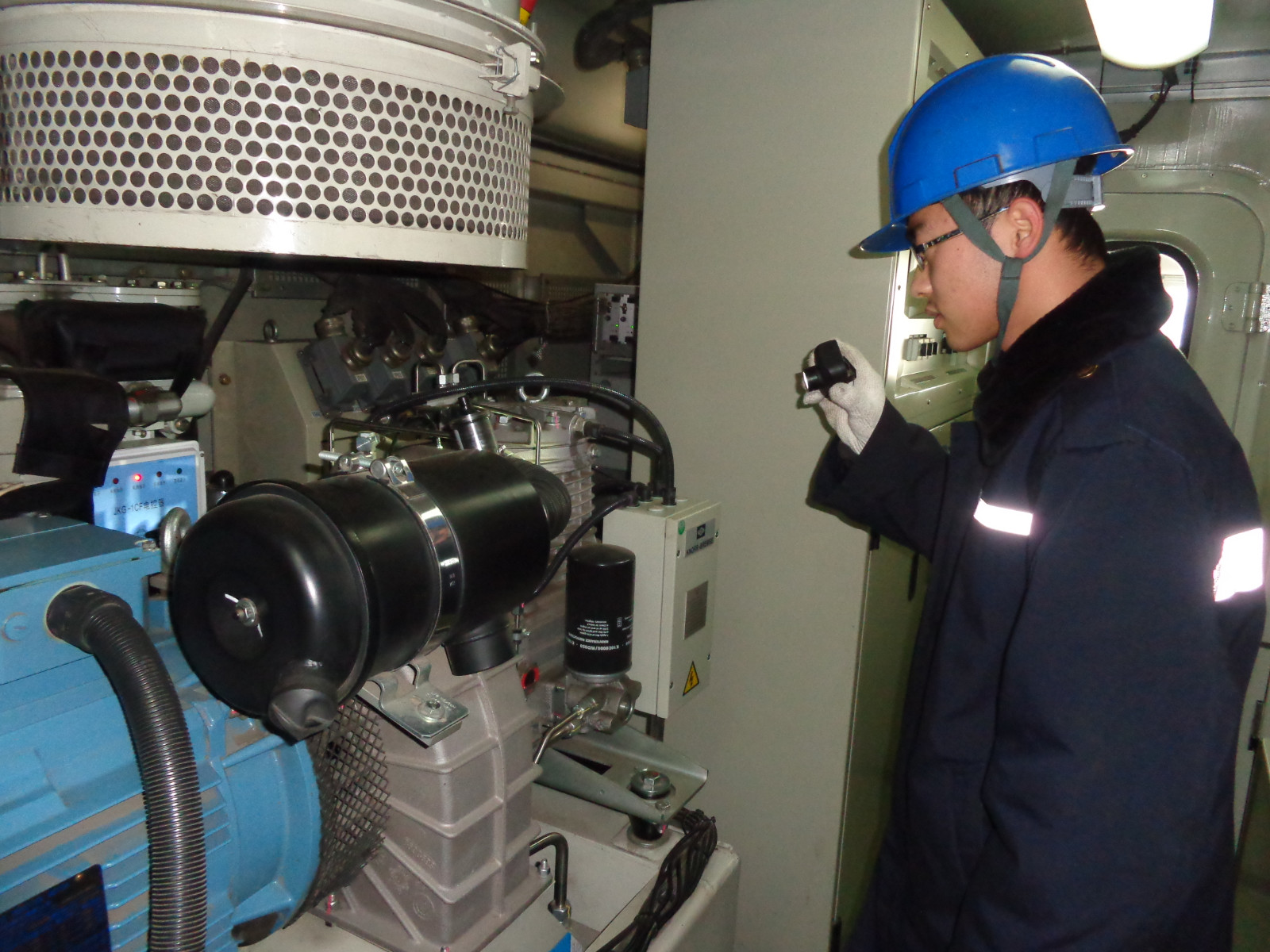 工作中,有件事令他難忘。去年7月8日,他在機械間修復(fù)照明燈不著時,由于在更換整流器時,他沒有把機械間燈電源關(guān)掉,在更換過程中把一號線與二號線短接,頓時火花四濺,辛虧沒有發(fā)生什么后果,現(xiàn)在想起來都有些后怕。