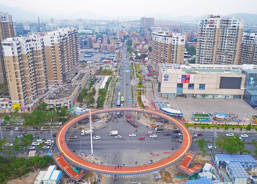 廈門市首座環(huán)形天橋航拍圖(央廣網(wǎng)發(fā) 陳嘉新攝) 央廣網(wǎng)廈門1月20日消息(記者陳庚 通訊員鄭素描)經(jīng)過近7個月的施工,廈門首座環(huán)形天橋——同安必達(dá)天橋今天投入使用,行人和車輛實現(xiàn)分流,周邊市民出行將更安全,并可在一定程度上緩解所處路口的交通擁堵狀況。 -