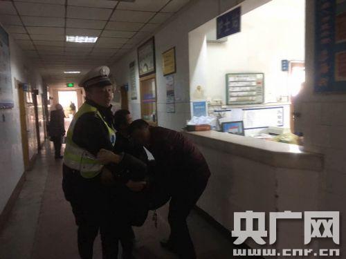 男子車禍?zhǔn)苤貍?警車逆行護送終平安 (馬雪風(fēng)攝)(央廣網(wǎng)記者 劉湛 攝)