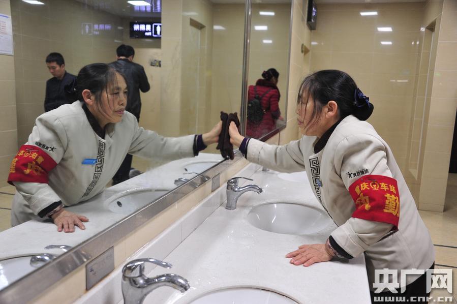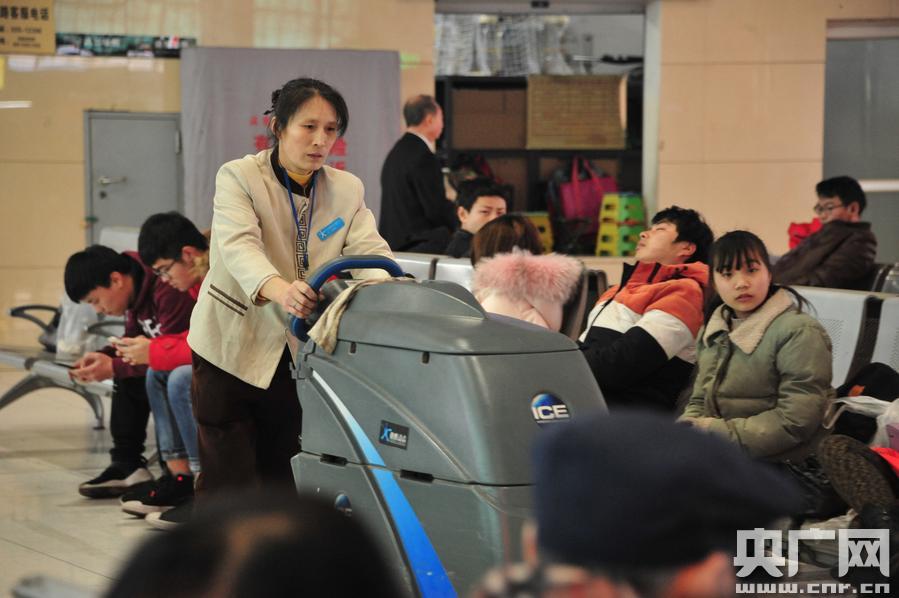 春運中的保潔員(汪亮 攝) -