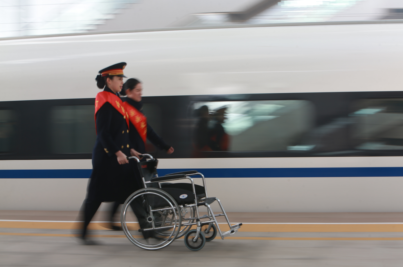 太原南站日均接發(fā)旅客6萬多人,“婷婷愛心服務(wù)區(qū)”平均每天要服務(wù)重點旅客500多人,既有進站上車,也有的有下車出站的;既有需要輪椅的,也有需要擔(dān)架的;既有盲人,也有聾啞人……只要旅客有出行需求,這里就有“婷婷”的愛心服務(wù)。接送老人,一遍遍的進出不厭其煩;推送旅客,一次次的上下不計其數(shù);遇上需要擔(dān)架的旅客,與旅客家屬一起抬著擔(dān)架爬樓梯,直至送到車廂鋪位上……常常顧不上休息,推遲了飯點,還不敢多喝水……一個班下來,她走的路至少都在兩萬步以上,最多時超過了三萬多步,常常一天下來,整個人都像散架了似的酸痛、無力。