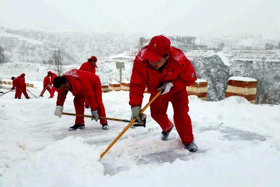 央廣網(wǎng)西安2月22日消息(記者雷愷 通訊員楊承欣)受新一輪寒潮和暴雪影響,長慶采油四廠百里油區(qū)2月20日普降大雪,氣溫驟降10℃,局地降雪達12cm,導(dǎo)致近5000公里油區(qū)道路通行中斷,上百個依靠罐車?yán)偷钠h井場庫位瀕臨負荷,原油拉運、物資配送、巡線等各型生產(chǎn)保障車輛及難以出行,生產(chǎn)陸續(xù)告急。長慶采油四廠全體動員,積極應(yīng)對“斷崖式”降溫。