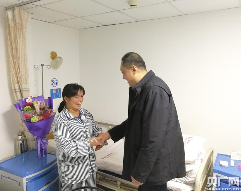 廈門(mén)綠鏈慈善基金會(huì)理事長(zhǎng)劉樹(shù)江給患者送上救助紅包