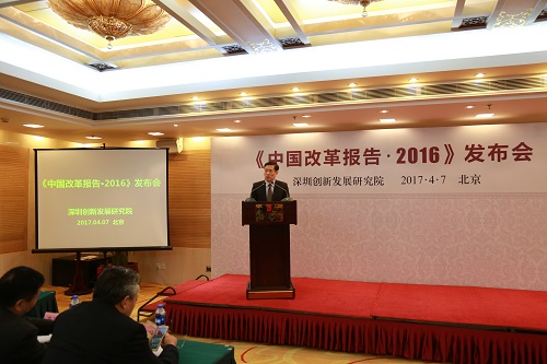 央廣網(wǎng)深圳4月8日消息(記者于揚)《中國改革報告2016》發(fā)布會4月7日在北京舉行。該報告由深圳創(chuàng)新發(fā)展研究院組織國家發(fā)改委、國家行政學(xué)院、中國社科院等機(jī)構(gòu)的專家撰寫,以“完善總體設(shè)計,尋求改革突破”為主題,對2016年的中國改革進(jìn)行了評估。