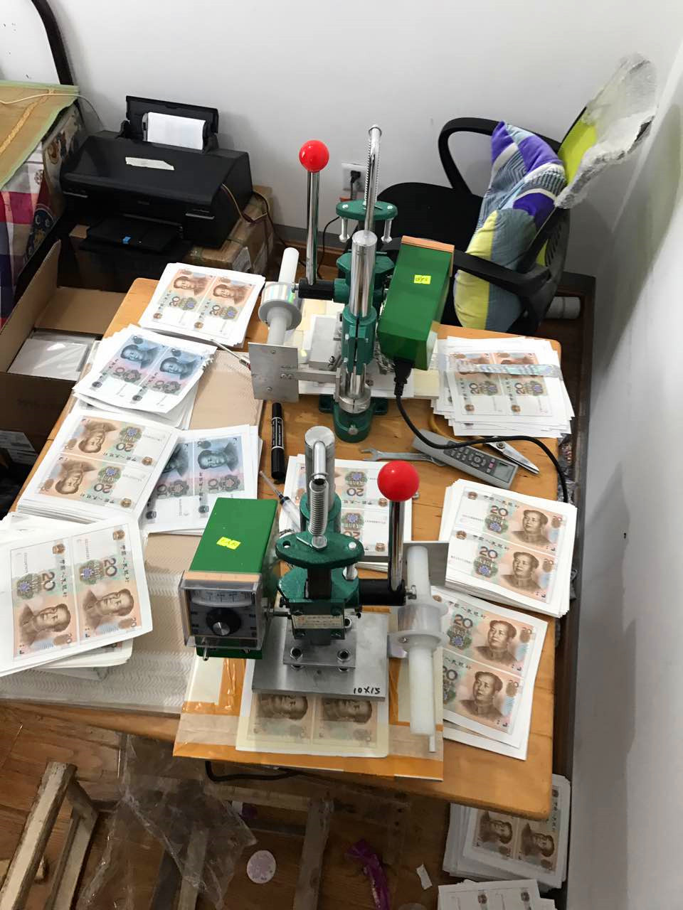 3月29日,深圳鐵路警方在成都鐵路公安處、成都市武侯區(qū)公安分局、雙流區(qū)公安分局的配合下,雷霆出擊,火速實施抓捕行動。民警突襲而入,猶如神兵天降,將還在趕著印制假幣的3名犯罪嫌疑人嚇懵了,好半天才回過神來,癱軟在地。民警立即將犯罪嫌疑人控制,當(dāng)場繳獲假人民幣成品、半成品約11000張,總面值約20萬元。其中,大部分為面額20元的紙幣,另有少量面額為10元、50元。同時,扣押彩色印刷機6臺,壓制紙幣金線機1臺,電腦、燙焊機、熒光油、水印章等制假工具一批。人贓俱獲,25歲四川籍男子唐某、23歲四川籍男子曾某、23歲四川籍女子何某不得不低頭認(rèn)罪,均對偽造、販賣假幣的犯罪事實供認(rèn)不諱。