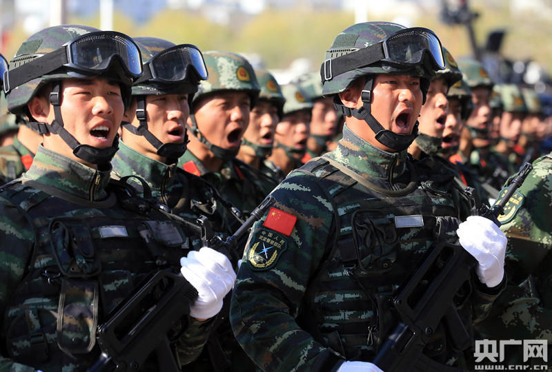 上午11時,各維穩(wěn)力量整齊列隊在廣場上,由武警官兵、公安干警、巡控隊員、消防官兵等組成的方隊排在前列,他們步伐鏗鏘有力,目光堅毅果敢;排在后方的裝備方隊,一名名武警官兵、公安干警傲然挺立于鐵甲之上,氣勢如虹,銳不可當(dāng)。