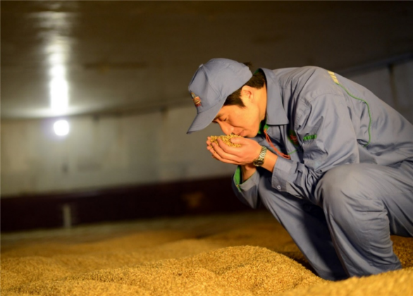 制麥工段是啤酒釀造的第一道工序,也是釀酒工藝中的基礎(chǔ)環(huán)節(jié)!皟(yōu)質(zhì)的大麥經(jīng)過浸麥、發(fā)芽、干燥、去根等近十道工序……產(chǎn)生了啤酒特有的色、香、和風(fēng)味!闭f起制麥流程,高高瘦瘦、樸實而靦腆的張云鴻頭頭是道。