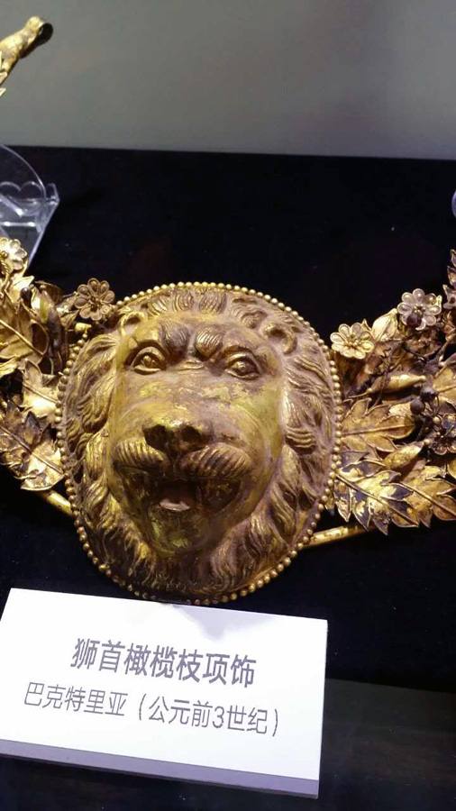 記者在展覽現場看到,古代埃及的描金立羊柄象形文字銀罐上雕刻著精美的象形紋,陜西省文物鑒定委員會主任劉云輝介紹,這類古埃及的文物過去在國內很少能看到,其上的象形紋與我國文物上的紋飾很類似。巴克特里亞的六羊獅首柄嵌寶石金波羅、牛首橄欖枝嵌寶石金冠、獅首橄欖枝項飾,波斯早期的銀鎏金狩獵紋銀盤以及貴霜王朝、古印度、犍陀羅等絲路沿線的精美文物讓參觀者大飽眼福。