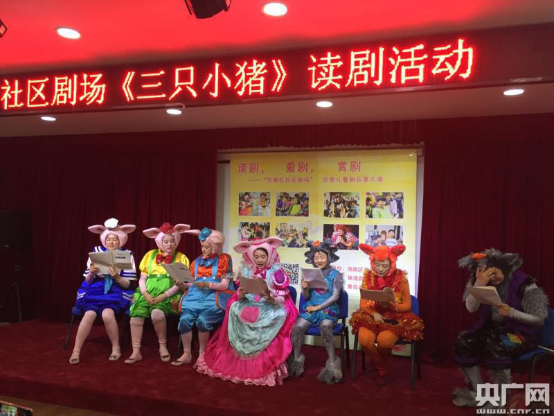 20日下午,青島市話劇院創(chuàng)作的經(jīng)典兒童劇《三只小豬》的“讀劇”活動在香港花園社區(qū)上演,精彩的演出吸引了近百名附近社區(qū)居民觀看。這也是青島市首個“社區(qū)劇場”。