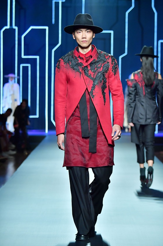 廣州廣播電視大學(xué)紡織服裝分院的林綠峰、顏曉冰設(shè)計(jì)作品《自燃狀態(tài)》獲?平M金獎(jiǎng)