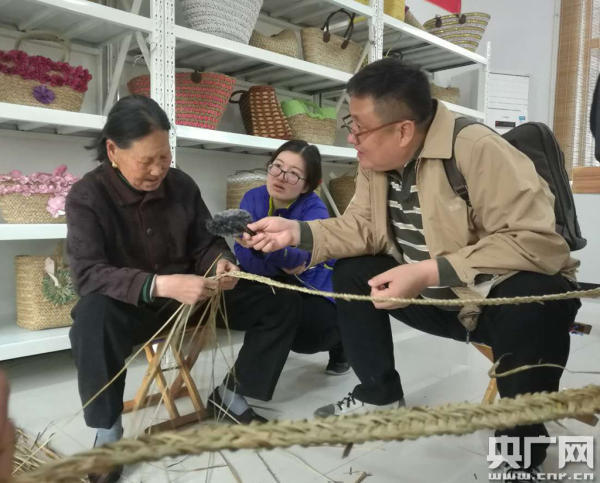 而在基地的游客服務(wù)中心,幾位婦女正圍坐在一起手工編織草編包。其中最為年長(zhǎng)的聶紅荷已經(jīng)81歲了,但是學(xué)得最快、編得最好。她說(shuō)在這里做活兒既能掙錢(qián),又能有人聊天解悶兒,著實(shí)不孬。“我是一看就會(huì)啊,我學(xué)得最快,他們就叫我學(xué)會(huì)了再去教別人。我閑不住,閑在家里沒(méi)事干,在這里干點(diǎn)兒活,人多說(shuō)個(gè)話(huà)還能聊天。(一個(gè)月能掙1000?)可以。生活改變了,生活好了。”
