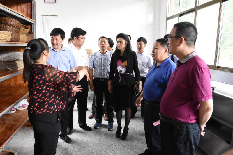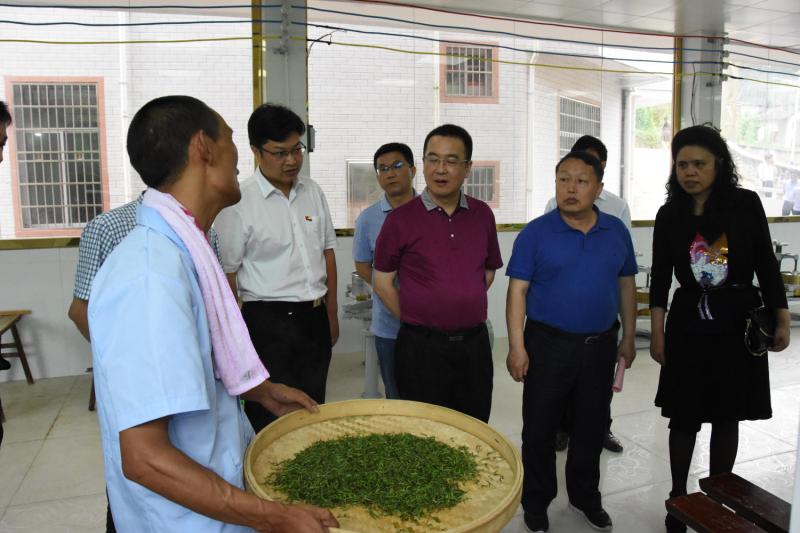 國務(wù)院扶貧辦領(lǐng)導(dǎo)考察車下村遂川狗牯腦茶生產(chǎn)車間
