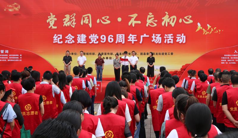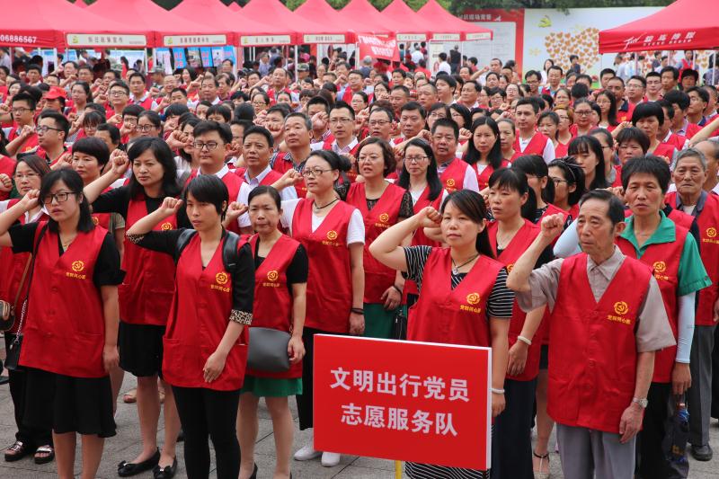 央廣網(wǎng)寧波6月29日消息(記者曹美麗 通訊員陳云松)“履行黨員義務(wù),執(zhí)行黨的決定,嚴(yán)守黨的機(jī)密,對(duì)黨忠誠……”今天上午,在寧波市寧?h潘天壽廣場舉行的“黨群同心·不忘初心”紀(jì)念建黨96周年廣場活動(dòng)上,該縣躍龍街道轄區(qū)內(nèi)的政策宣講黨員志愿服務(wù)隊(duì)、治水剿劣黨員志愿服務(wù)隊(duì)等7支黨員志愿服務(wù)隊(duì)共500多名黨員志愿者集體宣誓,重溫入黨誓詞,并開展認(rèn)領(lǐng)微心愿、政策宣講、醫(yī)療保健、愛心義賣、便民服務(wù)、愛心獻(xiàn)血等現(xiàn)場志愿服務(wù),獲得了群眾的點(diǎn)贊。