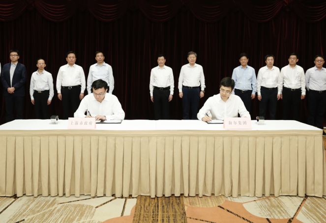 央廣網(wǎng)上海6月29日消息(記者傅聞捷 韓曉余)上海市政府與海爾集團(tuán)今天在滬簽署戰(zhàn)略合作框架協(xié)議。上海市委副書記、市長應(yīng)勇,海爾集團(tuán)董事局主席、首席執(zhí)行官張瑞敏出席。上海市委常委、常務(wù)副市長周波,海爾集團(tuán)董事局副主席、總裁周云杰代表雙方簽約。海爾集團(tuán)、松江區(qū)政府、臨港集團(tuán)三方簽署了《“海爾集團(tuán)‘產(chǎn)城創(chuàng)’生態(tài)圈模式”暨海爾智谷落戶G60科創(chuàng)走廊合作協(xié)議》。