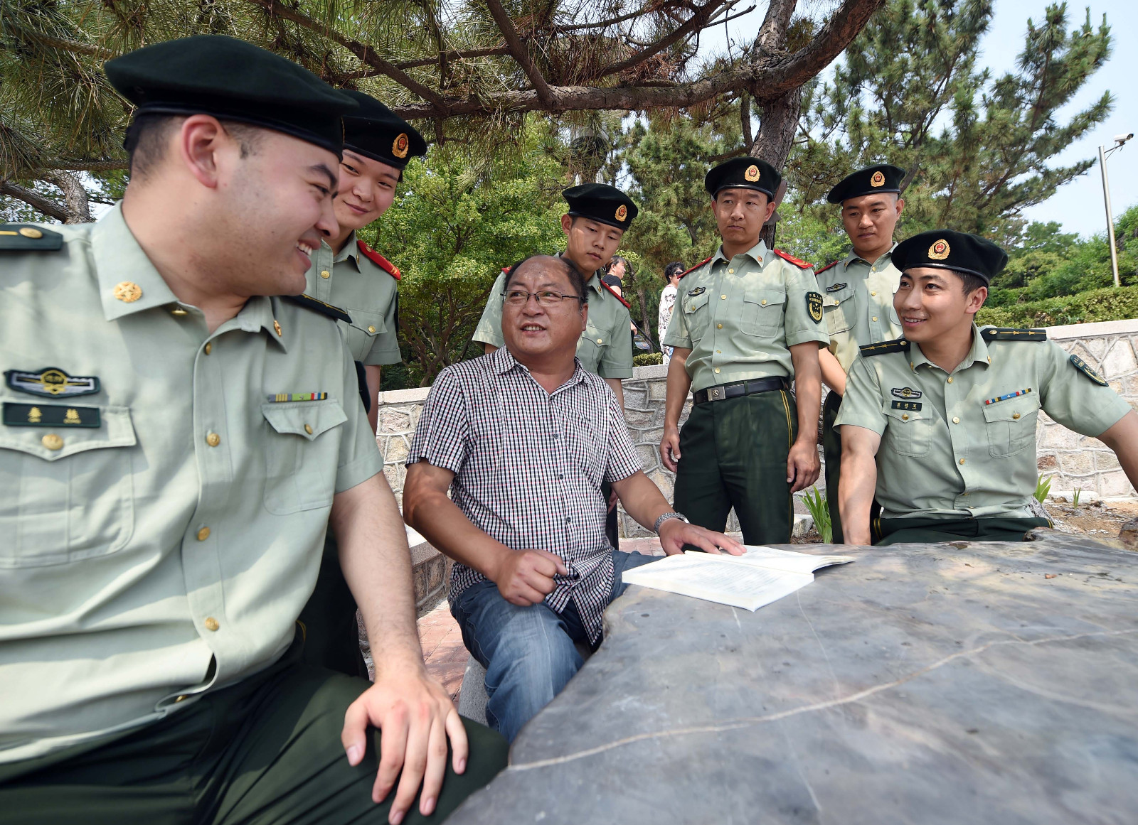 6月30日,30年黨齡的李國榮老黨員給新入黨的邊防戰(zhàn)士講述黨的優(yōu)良傳統(tǒng)和歷史。