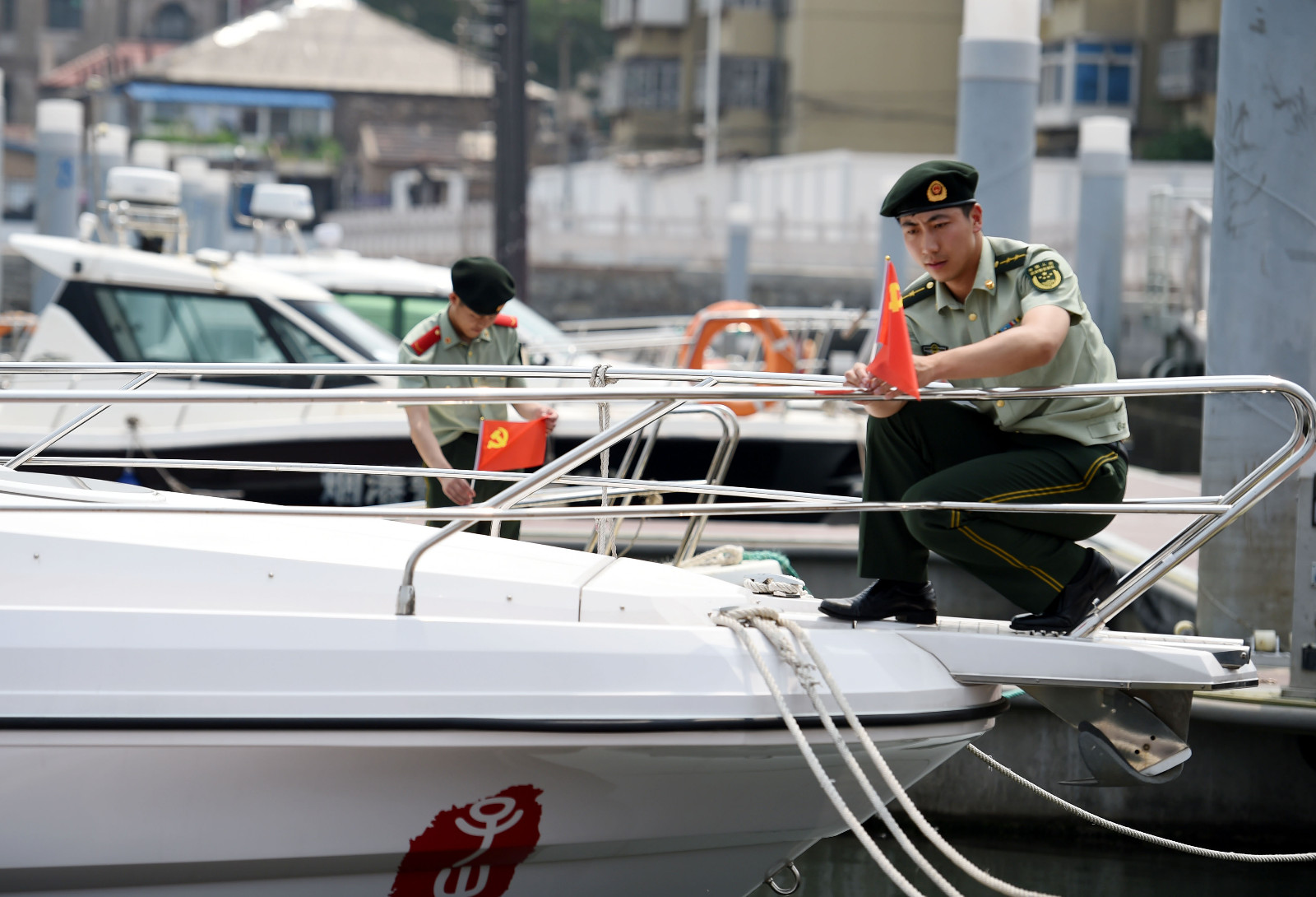 6月30日,邊防戰(zhàn)士將黨旗懸掛在轄區(qū)旅游碼頭船舶上,營造喜慶、祥和的節(jié)日氣氛。