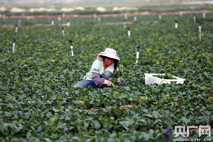 在菜芯地里辛勤地勞作(央廣網(wǎng)記者 郭長江 攝) -