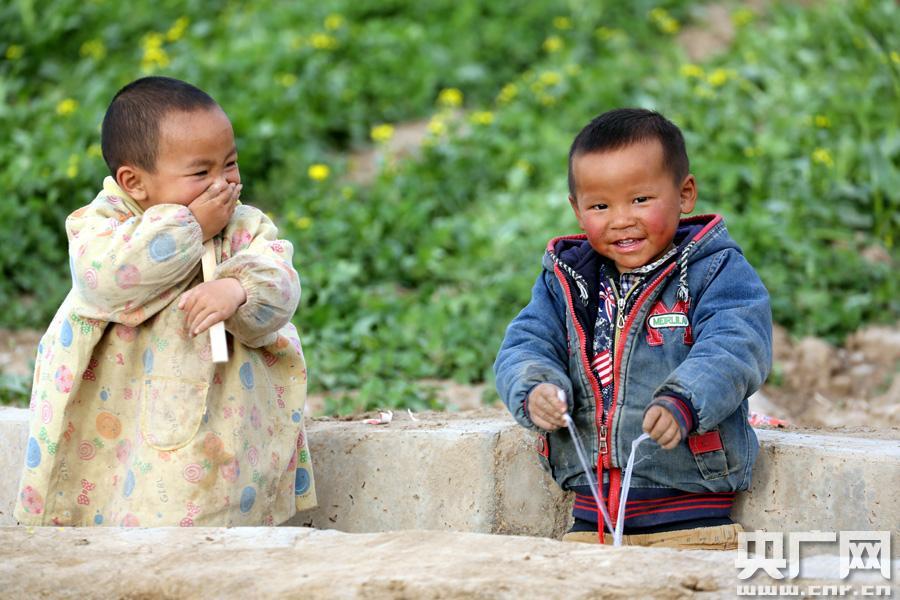 菜芯地里玩耍的兒童(央廣網(wǎng)記者 郭長江 攝) -