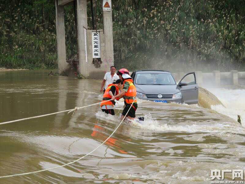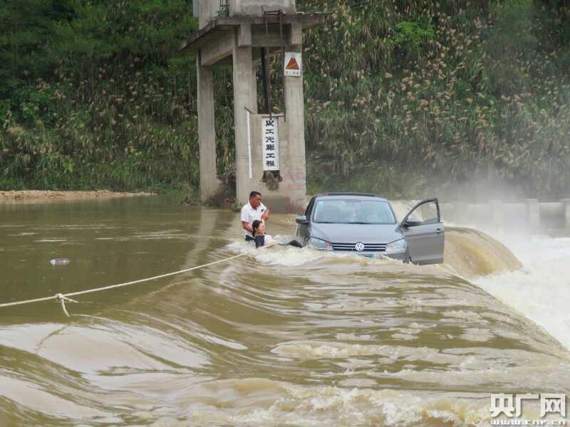 強(qiáng)降雨致河水猛漲 湖北英山父女駕車強(qiáng)過漫水橋被困