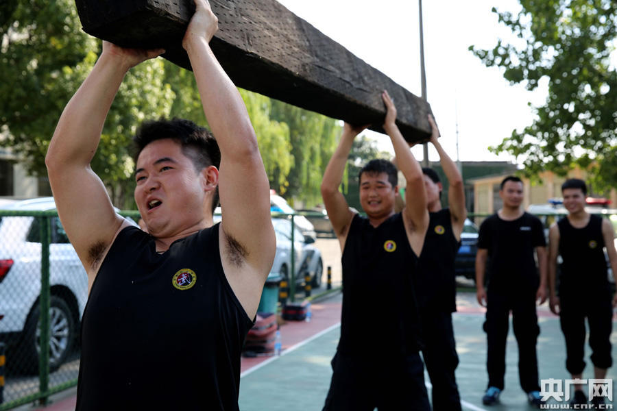 央廣網(wǎng)西安8月24日消息(記者雷愷 通訊員楊長(zhǎng)空 郝黎俊)“咬牙!堅(jiān)持住!”在安康鐵路公安處特警支隊(duì),盡管烈日當(dāng)空訓(xùn)練場(chǎng)的酷熱異常,大家卻都興高采烈著關(guān)注一場(chǎng)膠著的比賽,只見(jiàn)兩名曬得黝黑的隊(duì)員正翻著200多斤重的輪胎進(jìn)行著一場(chǎng)力量的比拼,在高達(dá)40多℃的高溫里,兩人都光著膀子依然大汗淋漓,都?xì)獯跤鯀s都不肯服輸,在大伙的吶喊中翻著輪胎向終點(diǎn)沖刺。