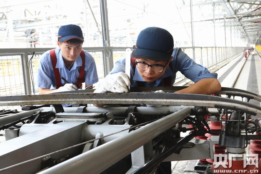成都動車段:受電弓檢修,護衛(wèi)動車“生命線”。(周兵 攝)