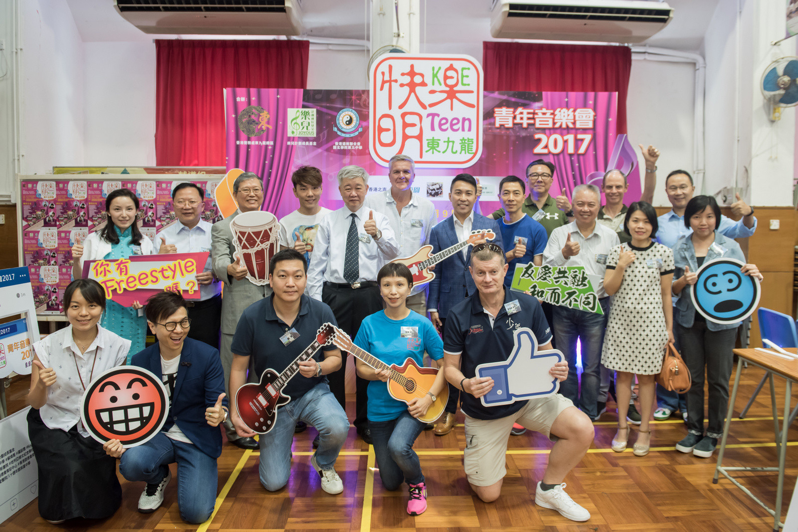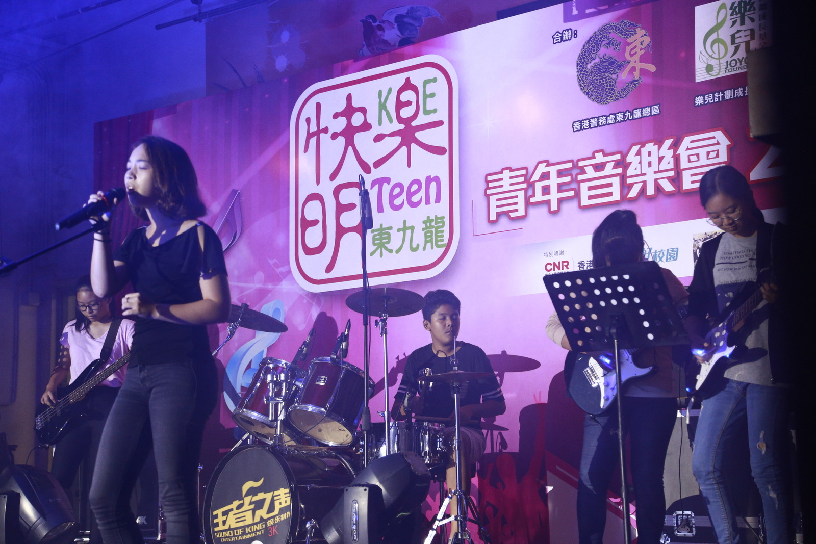 主禮嘉賓有東九龍總區(qū)指揮官麥國兆助理警務(wù)處長、樂兒計劃成長基金副主席陳李妮女士、香港道教聯(lián)合會圓玄學(xué)院第三中學(xué)李世基校長及快樂明TEEN委員會主席陳耀雄先生,在熱鬧的氣氛中,揭幕禮上揮動結(jié)他,音樂會正式開始,當(dāng)日將軍澳、秀茂坪、觀塘及黃大仙警區(qū)的指揮官均有到場支持。