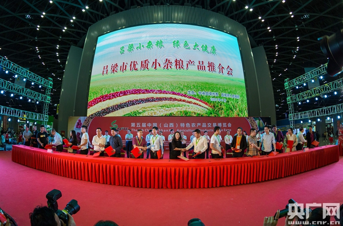 央廣網(wǎng)山西太原9月20日消息(記者岳旭輝)在山西太原正在舉行的第五屆中國(山西)特色農(nóng)產(chǎn)品交易博覽會上,呂梁市優(yōu)質(zhì)小雜糧產(chǎn)品全數(shù)精彩亮相,呂梁市長王立偉率13個縣市區(qū)有關(guān)負(fù)責(zé)人登臺推薦特色農(nóng)產(chǎn)品,承諾進一步落實優(yōu)惠政策,完善扶持措施,繼續(xù)創(chuàng)造審批最少、流程最優(yōu)、體制最順、機制最活、效率最高、服務(wù)最好的投資環(huán)境,誠邀有識之士到呂梁考察、投資。