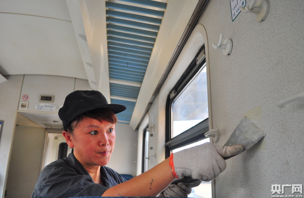 作為承擔(dān)鄭州局所有既有旅客列車檢修任務(wù)的鄭州車輛段高度重視此項工作,為了保證改造質(zhì)量,他們先是集中力量打造樣板車。以樣板定標(biāo)準(zhǔn),嚴(yán)格控制改造過程,在不損壞墻體內(nèi)部配線的基礎(chǔ)上,按照橫平豎直、間距均勻、整體劃一的要求,實地測算安裝位置,劃線打孔精準(zhǔn)安裝。為了保證客車環(huán)境的美觀,工作人員使用膩?zhàn)訉⒚恳粋外露釘孔封堵平整,確保廣大旅客的出行體驗。