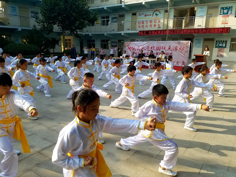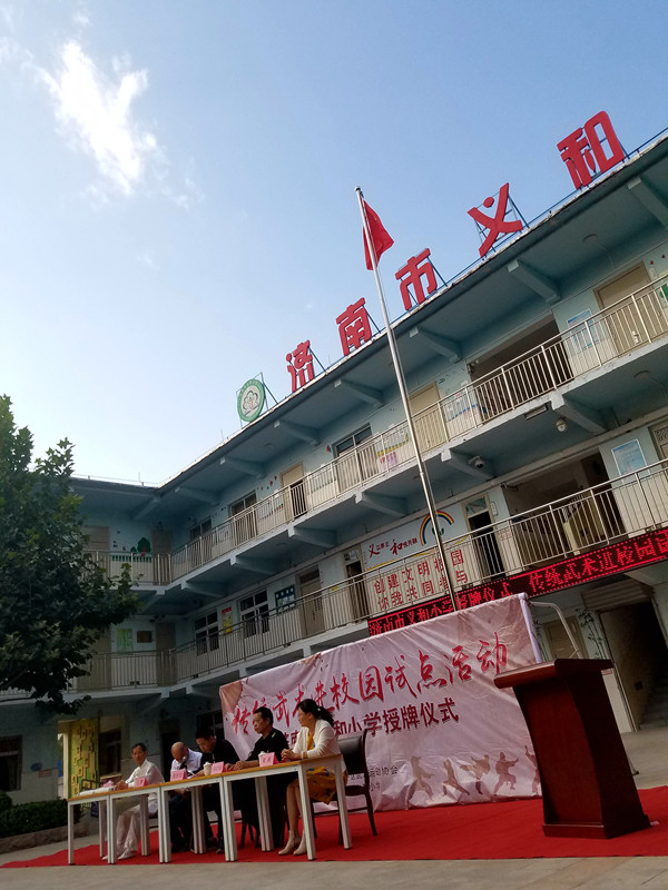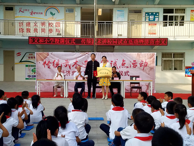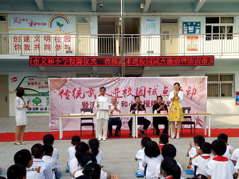 當(dāng)日,傳統(tǒng)武術(shù)進(jìn)校園試點(diǎn)活動(dòng)暨濟(jì)南市義和小學(xué)授牌儀式舉行。