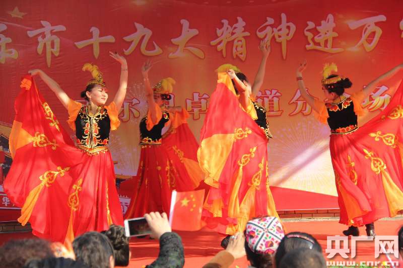 博樂市青得里鎮(zhèn)乃仁布拉格村文化能人買提庫爾班、冬都顧里木圖村文化能人麥迪娜依,用萊帕歌唱十九大,歌唱習(xí)總書記,舞出美好生活。