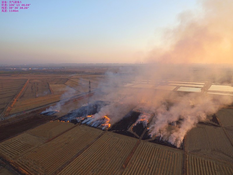 經(jīng)無人機對賀蘭縣習(xí)崗鎮(zhèn)黎明村其中一處(東經(jīng)106.15北緯39.49)火點進行監(jiān)測,在高171米處,監(jiān)測可吸入顆粒物(PM10)濃度為6493μg/m3,細顆粒物(PM2.5)濃度為2850μg/m3,二氧化硫(SO2)濃度為244μg/m3,二氧化氮(NO2)濃度為691μg/m3,直接嚴重影響了環(huán)境空氣質(zhì)量改善。