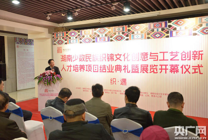 據(jù)悉,《湖南少數(shù)民族織錦文化創(chuàng)意與工藝創(chuàng)新人才培養(yǎng)》展覽從2017年11月21日——2017年12月10日,為期20天,共展出作品百余件,此次展品將傳統(tǒng)美術(shù)、傳統(tǒng)手工技藝相關(guān)的非遺元素與文化創(chuàng)意、工藝創(chuàng)新相融合,在傳統(tǒng)與時尚之間構(gòu)建起一條非遺元素與現(xiàn)代設(shè)計的橋梁,讓更多人關(guān)注湖南的少數(shù)民族織錦。