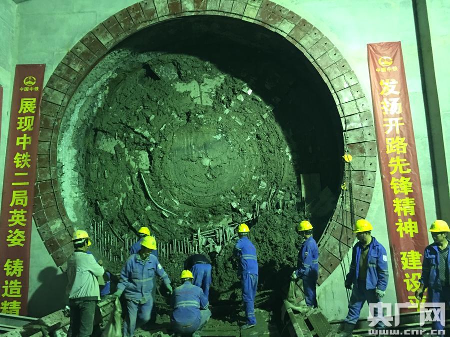 陳家營站大河埂右線隧道順利貫通(央廣網(wǎng)發(fā) 袁露攝)