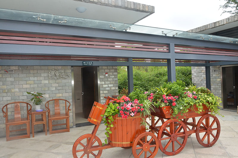 從雙流東升街道金河路鳳翔湖公園廁所出來(lái),家住附近的居民小吳非常享受地告訴記者,“看,公廁外花草樹(shù)木環(huán)繞,壩子頭還停了輛古色古香的木質(zhì)花車(chē),晃眼一看,簡(jiǎn)直像一座‘花園別墅’,太漂亮了!”