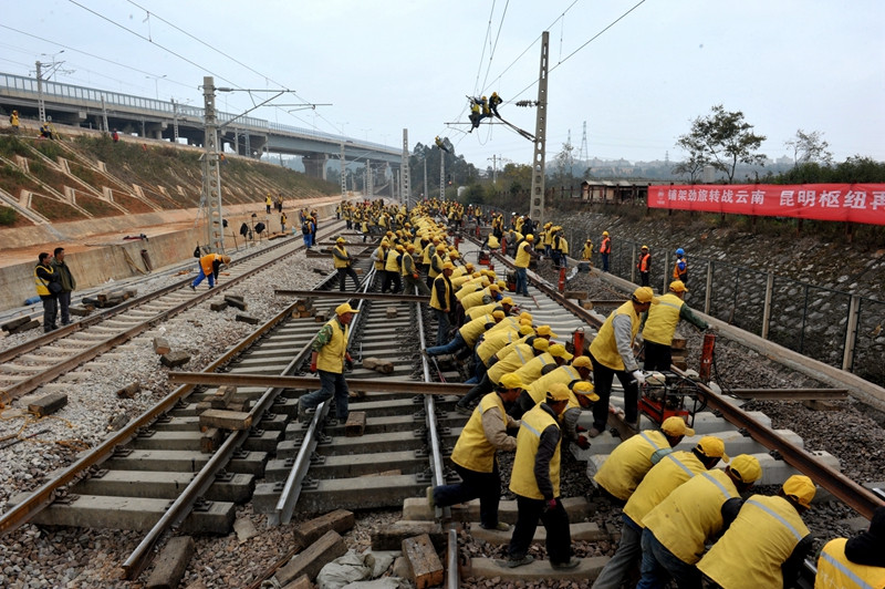 為把昆明東站與王家營西站連成一體,更好發(fā)揮輻射南亞東南亞“最大旱碼頭”的作用,中國鐵路昆明局集團(tuán)有限公司對兩站間鐵路通道進(jìn)行擴(kuò)能改造,增建新的大能力運(yùn)輸通道。隨著兩站間 線路“單車道”變“三車道”,南昆、滬昆、成昆、昆玉河等進(jìn)出云南的鐵路在昆明鐵路樞紐實(shí)現(xiàn)了大能力快進(jìn)快出。