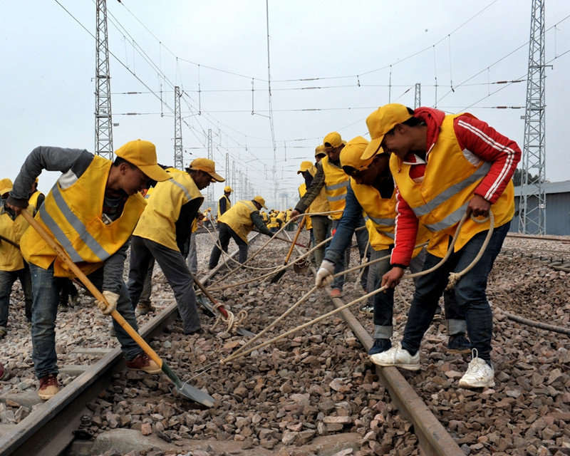 施工人員對線路進(jìn)行搗固。張偉明攝影