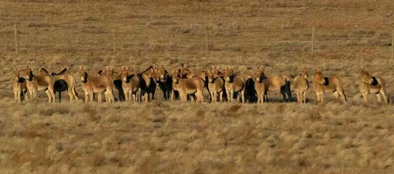 蒙古野驢別名亞洲野驢、餓驢子、野驢,屬于馬科,是國家一級保護(hù)動(dòng)物,屬世界瀕危動(dòng)物。曾經(jīng),蒙古野驢數(shù)量龐大,是典型的高原寒漠動(dòng)物,棲于亞寒帶開闊草甸和寒凍半荒漠、荒漠地帶。前些年,由于氣候變遷、生態(tài)環(huán)境惡化和人類的捕殺,蒙古野驢的數(shù)量急劇減少。近幾年,隨著生態(tài)環(huán)境的穩(wěn)步恢復(fù)、民眾環(huán)保和保護(hù)野生動(dòng)植物意識(shí)的不斷增強(qiáng)以及森林公安等相關(guān)部門的強(qiáng)有力的保護(hù)下,蒙古野驢重新回歸了人們的視野。當(dāng)?shù)孛窬苍?014年12月初和2015年1月在中蒙邊境線附近陸續(xù)發(fā)現(xiàn)過數(shù)量不等的蒙古野驢群。