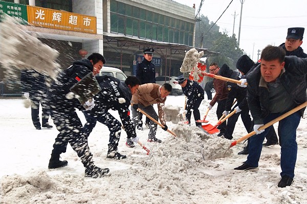 隨著大雪冰凍天氣持續(xù),當(dāng)天桃江已有8條道路結(jié)冰,1月26日,桃江全境被積雪覆蓋,多條道路結(jié)冰,受阻車輛在冰雪中掙扎前行。民警“聞雪而動(dòng)、見(jiàn)雪上路、邊下邊除”,鋪撒融雪鹽,在寒風(fēng)中揮動(dòng)鍬鎬,揮汗如雨,以最快的速度搶通冰封路段。由于氣溫持續(xù)走低,加之降雪不斷,被搶通的冰面很快再次凝凍,民警持續(xù)作戰(zhàn),餓了在路邊吃碗方便面,渴了就喝口冰水,雙腳凍得沒(méi)了知覺(jué)就跑動(dòng)一陣,手磨破了依舊咬牙堅(jiān)持。