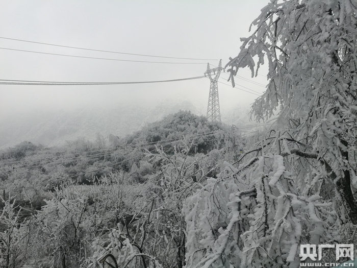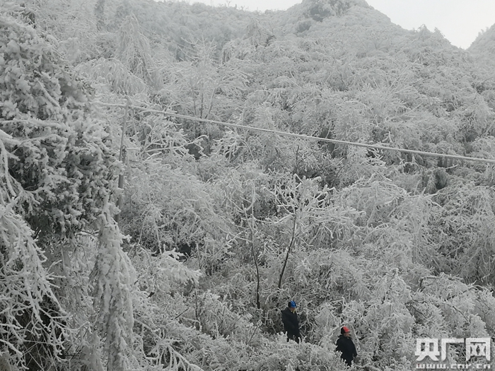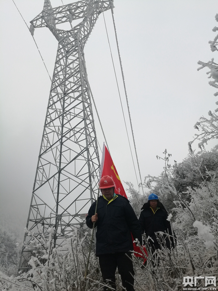 1月29日下午,記者與巡線工人一起進(jìn)入都勻螺絲殼山頂。這是整個都勻市海拔最高、且每年凝凍最大、最寒冷的地方,每年冬季,山頂上漫山遍野白茫茫一片全被冰雪覆蓋。作為都勻供電局“電亮先鋒”黨員突擊隊(duì)隊(duì)員和線路運(yùn)行巡視員工之一,每天面對嚴(yán)寒,深入凝凍最大的螺絲殼山頂巡線,對于都勻供電局線路運(yùn)行二班班長毛光祥毛光祥來說已經(jīng)是家常便飯,他說:“我們班上12個人,從1月1號以后,我們就取消休假,每天走在這個山上,一個是路滑,天寒地凍,沒辦法就只有靠我們隊(duì)員自己拿鐮刀或柴刀在這個山水砍出一條路來,每個隊(duì)員基本上每天都要走五到六公里的線路,不間斷的巡視,保證我們的這個線路通暢!