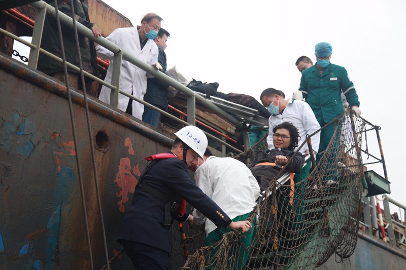 汕頭海事局立即啟動(dòng)應(yīng)急預(yù)案,一方面安撫船員保持通信暢通,指揮該船從南澳海域駛?cè)肷穷^港內(nèi)錨地;另一方面聯(lián)系120急救中心派出3部救護(hù)車,安排醫(yī)護(hù)人員趕赴碼頭救助;同時(shí),還迅速聯(lián)系口岸聯(lián)檢部門開通“綠色通道”,為外籍傷員集中簡化辦理入境手續(xù),爭分奪秒力爭救援時(shí)間。