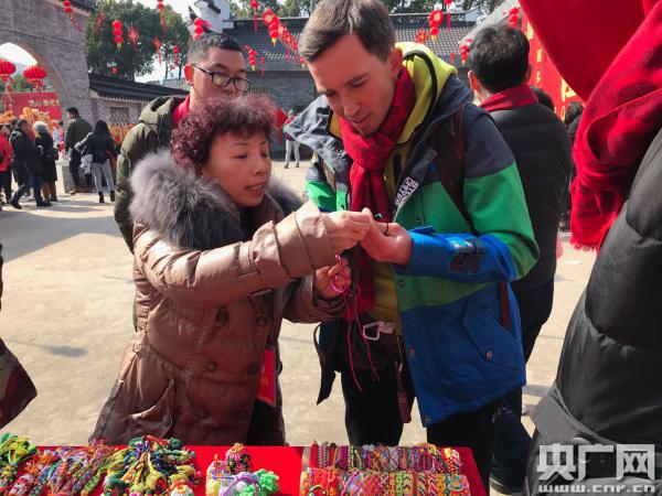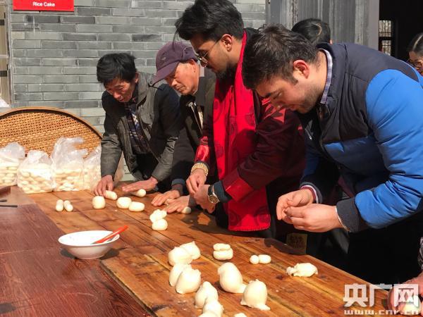 體驗(yàn)活動(dòng)結(jié)束后,中外游客和村民一起吃團(tuán)圓飯,飯后還進(jìn)行了游戲互動(dòng),并相互贈(zèng)送新年禮物。部分外國(guó)友人還跟著村代表去走街串巷,慰問一些家庭,為他們掛燈籠、貼春聯(lián)、送年貨,表達(dá)了新春祝福,然后又走訪了一些當(dāng)?shù)厝思,讓他們親身感受了“禮尚往來(lái)”的傳統(tǒng)。