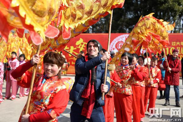 央廣網(wǎng)寧波2月4日消息(記者曹美麗)一排排紅燈籠、一串串中國(guó)結(jié),寧波市奉化區(qū)尚田鎮(zhèn)鳴雁村處處散發(fā)新春氣息。2月4日,來(lái)自20多個(gè)國(guó)家和地區(qū)的百余名中外友人和鳴雁村村民一起舞龍、敲鼓、逛傳統(tǒng)集市、吃農(nóng)家團(tuán)圓飯,體驗(yàn)了一把中國(guó)過年習(xí)俗。