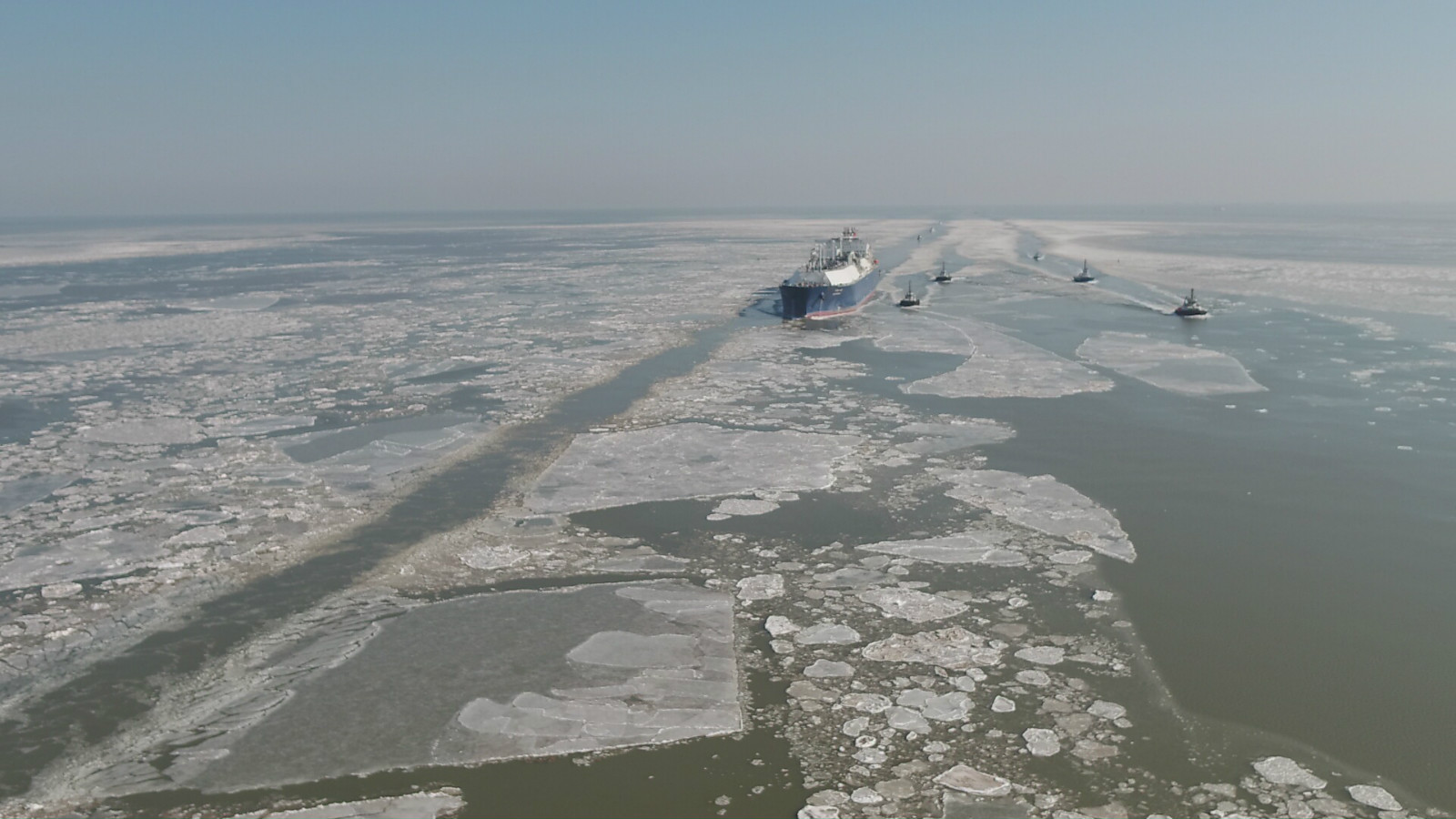 央廣網(wǎng)天津2月6日消息(記者夏震宇 通訊員馬艷玲)在天津海事船艇的護(hù)送下,載運(yùn)LNG(液化天然氣)的“中能北!陛喗裉煜挛纾2月6日)安全靠妥大港港區(qū)中石化天津LNG碼頭。這也是天津港大港港區(qū)通航后迎來(lái)的首艘LNG船舶。