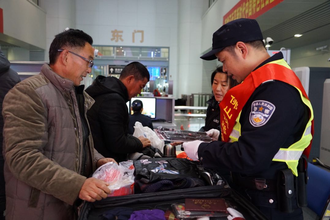 據(jù)統(tǒng)計,自春運以來,佛山西站已查獲危險品、違禁品1532批2267件,其中管制刀具57把、油漆7.4公斤、汽油煤油5.12公斤、打火機731把,確保了旅客列車和車站安全穩(wěn)定。