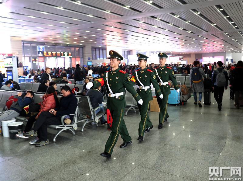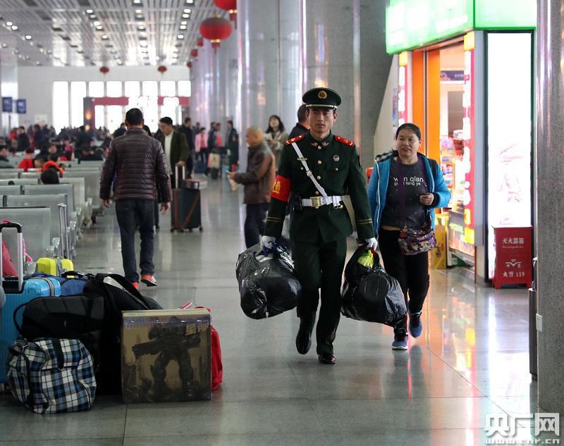 央廣網泉州2月14日消息(記者彭建軍 通訊員彭勇 莊標)春運期間,隨著務工人員紛紛返鄉(xiāng),車站客流量出現高峰,在福建泉州動車站,負責車站春運執(zhí)勤的武警官兵認真履職的同時,為旅客提供熱情周到的便民服務,用實際行動溫暖旅客回家路。