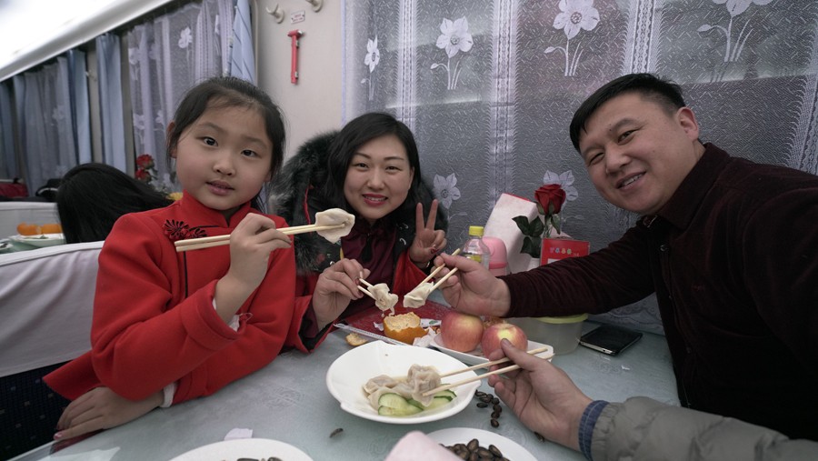 “春聯(lián)上寫了‘列車進(jìn)入新時代’,我們的列車服務(wù)也有了新變化、新氣象,看這些精美的窗花、溫馨的車廂、整潔環(huán)境,都讓我對乘火車有了新的體驗(yàn),也感受到了不一樣的年味兒,回家路上,有他們相守,我是幸運(yùn)的,真心為他們打call!”乘K1178次列車去北京換乘回沈陽探親的王振興一家三口對著鏡頭豎起了大拇指。