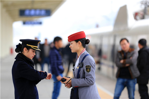 春運(yùn)期間,凱里南站每天辦理接發(fā)列車75趟,時間跨度從早上7點(diǎn)多到晚上22點(diǎn)半,平均12分鐘辦理一次旅客組織乘降。從2月7日(農(nóng)歷臘月二十二)以來,凱里南站就迎來返程客流高峰,每天發(fā)送和到達(dá)旅客超過1.5萬人次,對于一個地級市的高鐵站來說,客運(yùn)組織工作顯得十分繁忙。鐵路春運(yùn)不停歇的各項(xiàng)工作任務(wù)像一條紅線把兩人緊密地聯(lián)系在一起。