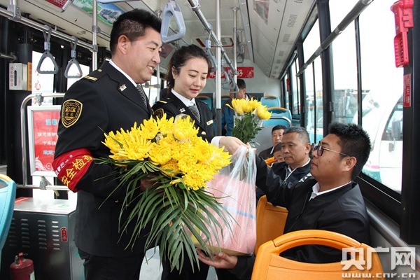 央廣網(wǎng)青島4月5日消息(記者王偉 通訊員陳愛潔)清明節(jié)小長假,掃墓祭祀、進(jìn)山游玩的市民逐漸增多。節(jié)日期間,青島交運(yùn)溫馨巴士工作人員在617路、676等途經(jīng)殯儀館、百齡園等陵園的公交線路上向市民提供鮮花、綠植,兌換市民手中的香燭、紙錢、鞭炮,引導(dǎo)市民安全乘車、文明祭祀。