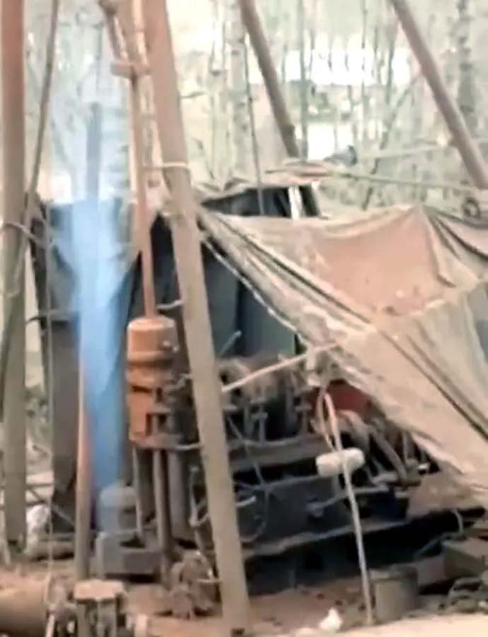 4月26日,甘肅鐵路建設(shè)公司在樂(lè)都區(qū)下?tīng)I(yíng)藏族鄉(xiāng)茶龍村開(kāi)展西成鐵路地質(zhì)勘查施工過(guò)程中,鉆探到隧道底層300米處,打出不明藍(lán)色氣體。