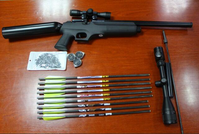 5月3日,深圳車站安檢員在火車站開展安檢工作時,發(fā)現(xiàn)一名男子攜帶的行李箱藏有可疑物品。安檢員要求其開箱接受檢查,該男子卻神情緊張,拒不配合。安檢員立即向深圳鐵路公安處深圳車站派出所匯報。獲悉情況后,派出所迅速通知附近民警趕赴現(xiàn)場處置。民警詢問該男子行李箱內(nèi)有什么物品,該男子支支吾吾,答非所問。民警加強(qiáng)警戒,打開該男子攜帶行李箱一看,發(fā)現(xiàn)里面居然有分解存放的氣步槍1支,8倍及4倍放大鏡瞄準(zhǔn)器各1個,彈夾3個,金屬彈珠151顆,箭9支。